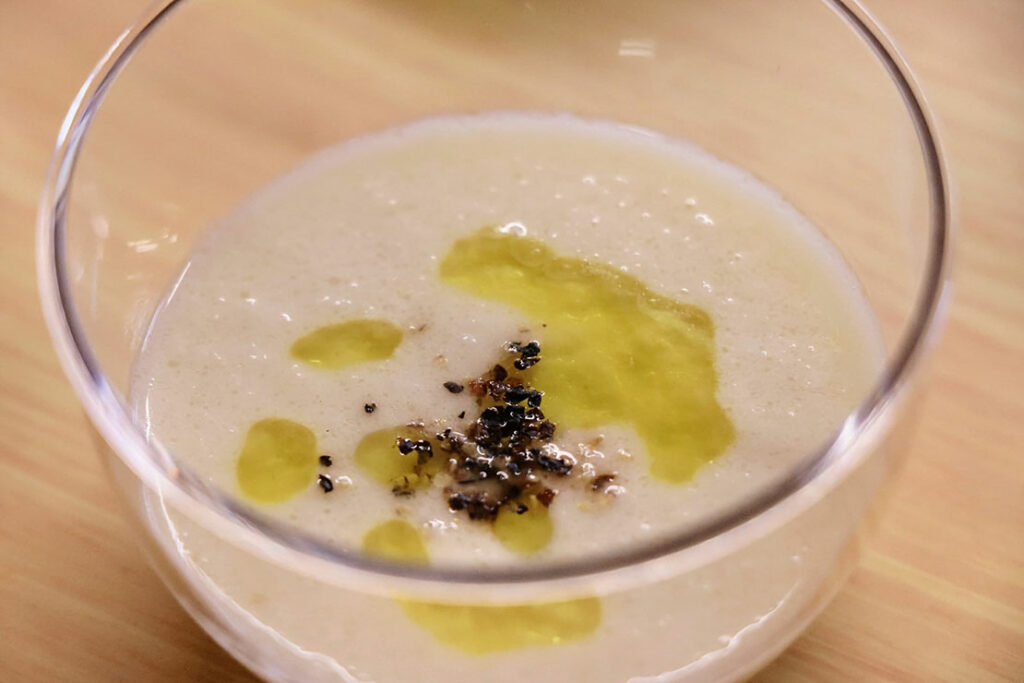 ソテー玉ねぎの甘みを活かしたクリーム仕立て。ケルセチン × オレオカンタールで若々しさをキープ。お寿司屋さんにはないフレーバーが楽しめる。