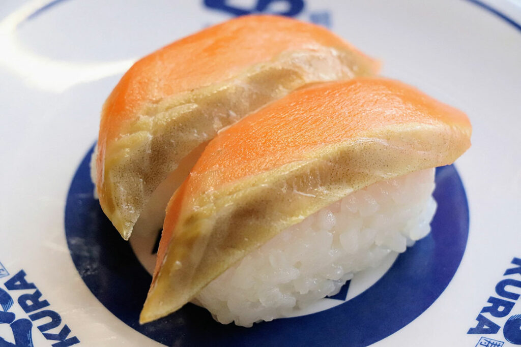 銀鮭養殖のパイオニア・マルキンのブランド『銀王』使用。特別配合の餌で育ち、あっさりした脂身、ふっくら柔らかい身上品な甘みが特徴。サーモン好きなら納得の寿司!