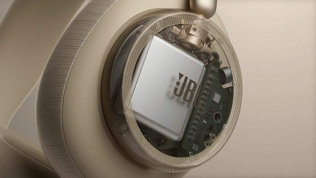 ヘッドバンドは、約7年間JBL Liveシリーズの象徴だったファブリックから、イヤーパッド同様の柔らかなPU素材へ刷新。重量バランスを最適化する新設計により、長時間でも快適な装着感を実現している。このフィット感が1日中楽曲を連れ出してくれる。