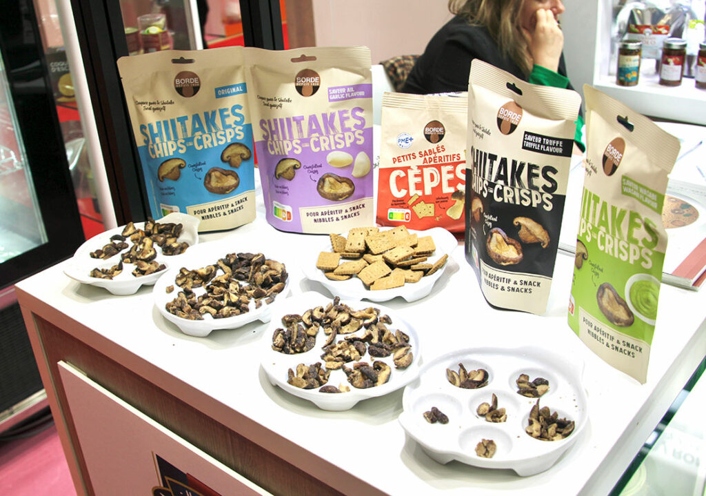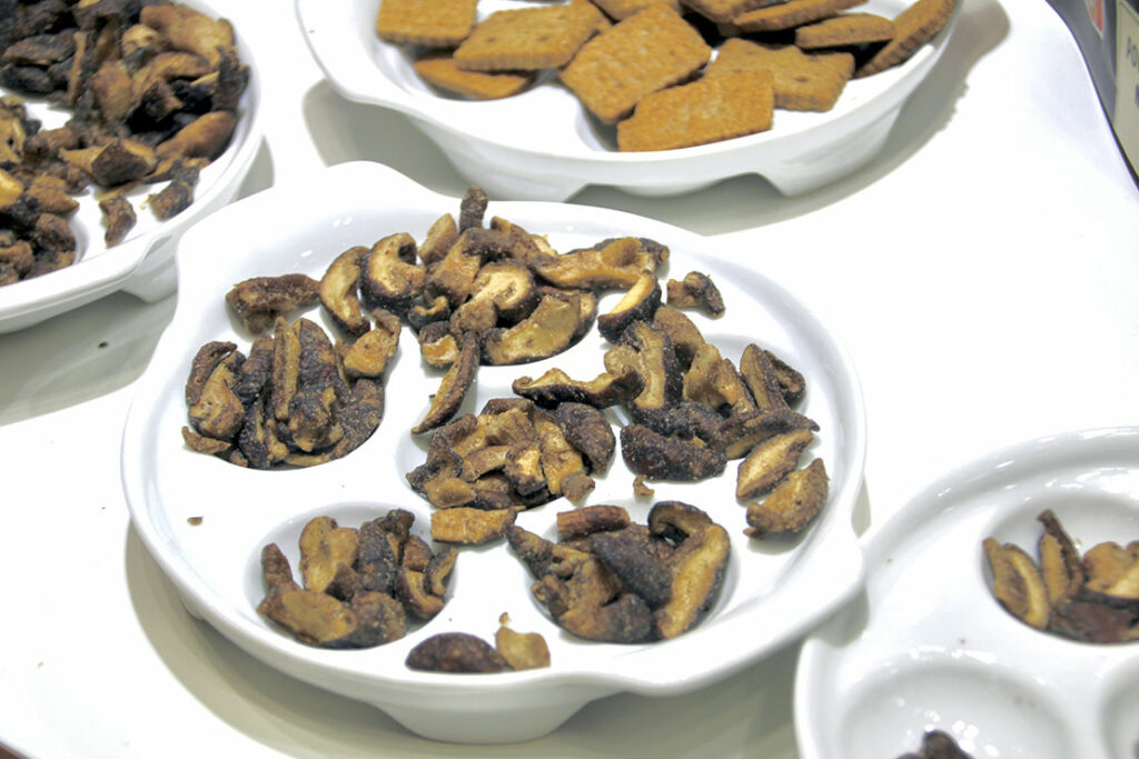 近年は、フランスで椎茸がトレンドだという。今回披露されたのは、なんと椎茸を乾燥させて作った、椎茸のチップス! なんでも、椎茸の独特な香りが好相性だったとか。アペリティフやおやつ、おつまみに最適だ。