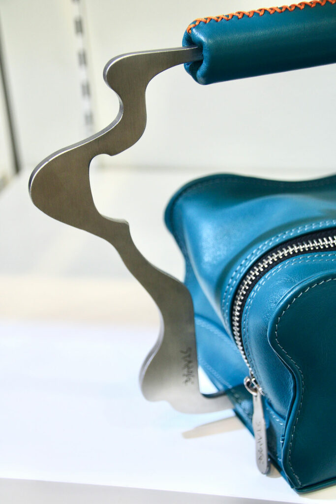 ユニークな持ち手の金具のラインは、女性の甘美でしなやかなシルエットを表現したものだという。従来の概念とは、逆説的なバッグのビジョンを提示していると言える。