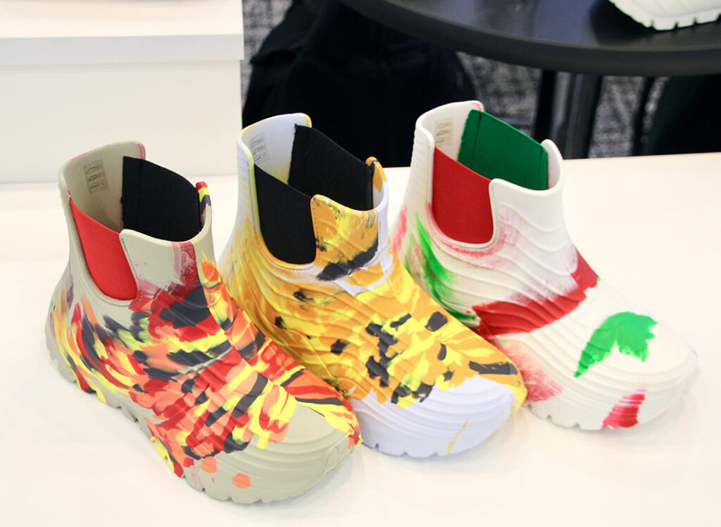 例えば、クリアなイメージの従来のスニーカーに、敢えて汚れを加えたシューズは、見事にセルフアイコニックな世界観を表現している。