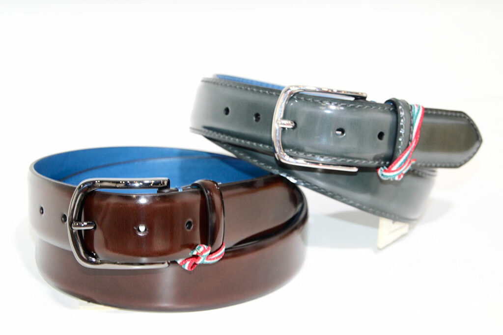 カーフレザーを使用した、光沢感が美しい新作ベルト。イタリア・トスカーナ地方の伝統的な革の染色技法「タンポナート(Tamponato)」で染められたレザーを使用。