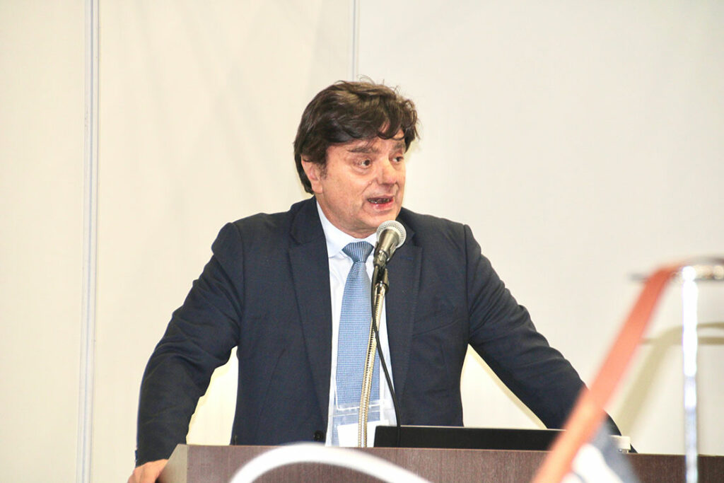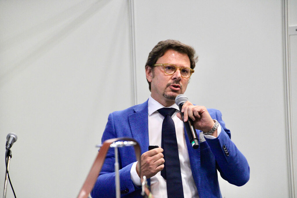 「今年は『MICAM』開催100回目を迎える年です。世界最大級の靴の国際見本市として、小売業の将来にもフォーカスしていきたいです」と語る、ジョルジオ・ポサニョ氏。