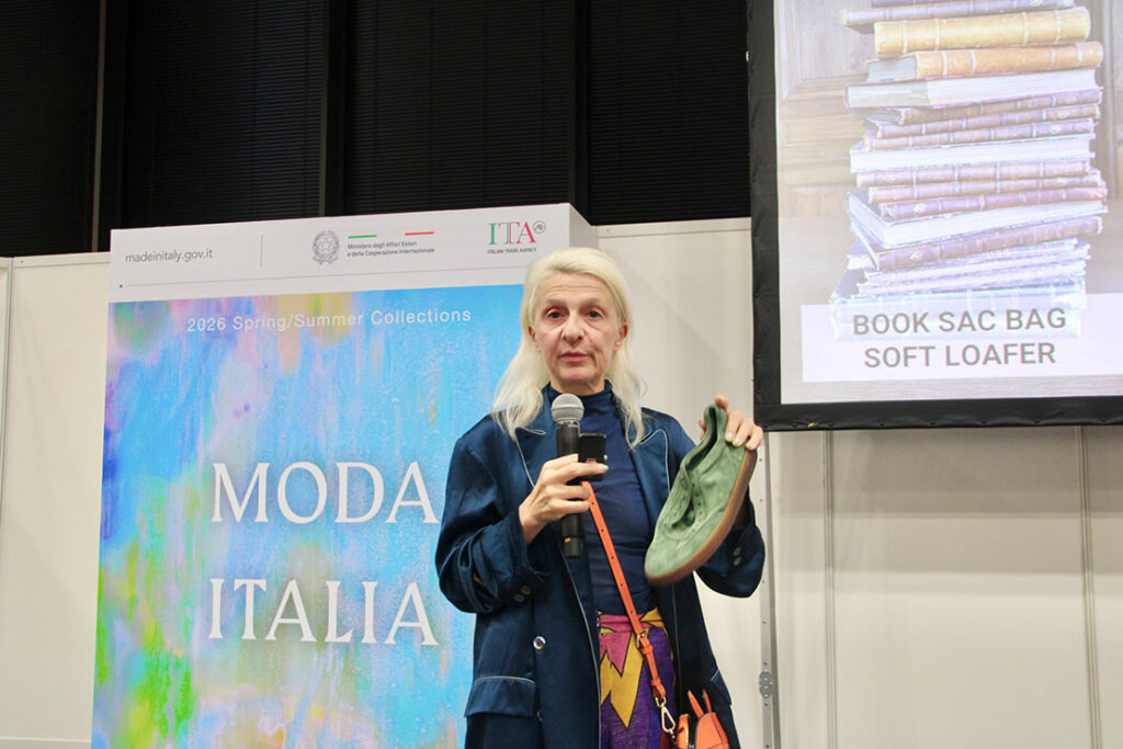 「このイベントは、イタリアの産業プロモーションの一環として行われるものです。9月に開催される『MIPEL』と『MICAM Milano』という世界的に有名なミラノの展示会に繋がるものです」