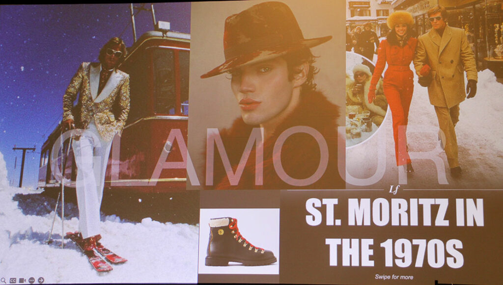 山で使用するファッションを、街用に再定義した、「アフター・スキー」、「アルペン・ニッティング」、「ウインター・ヘリテージ」などのイメージが、トレンドに欠かせないキーワードになると言う、オリエッタ・ペッリッツァーリ氏。