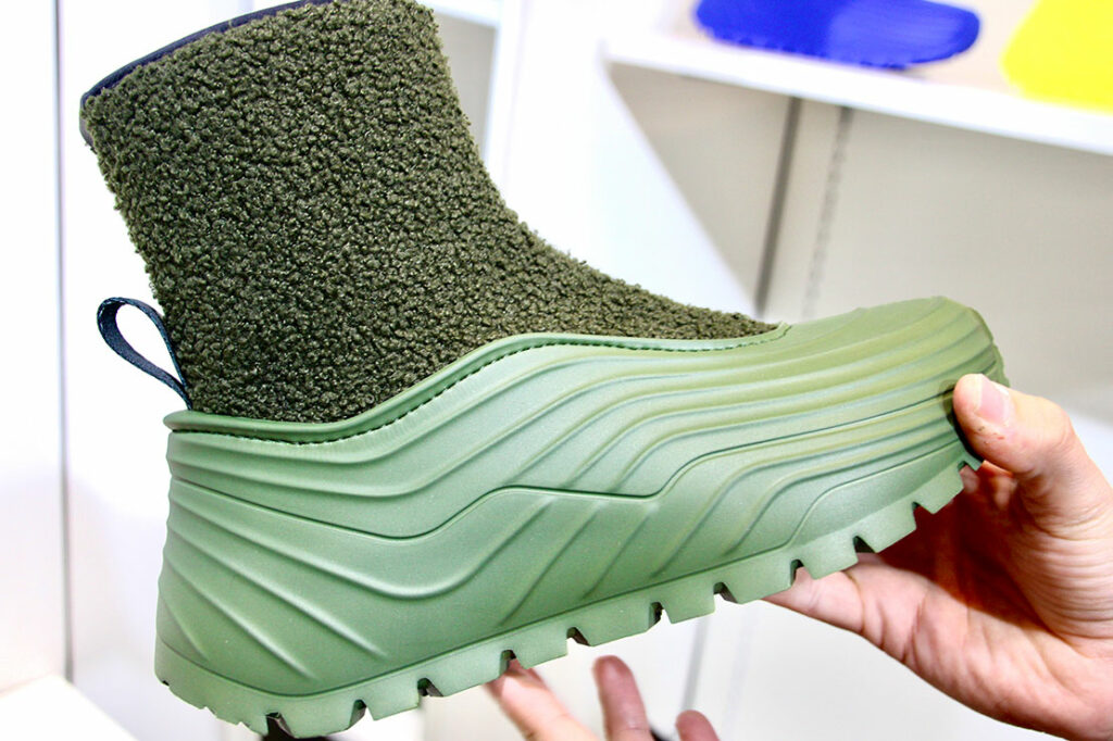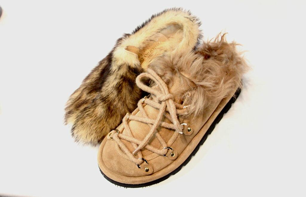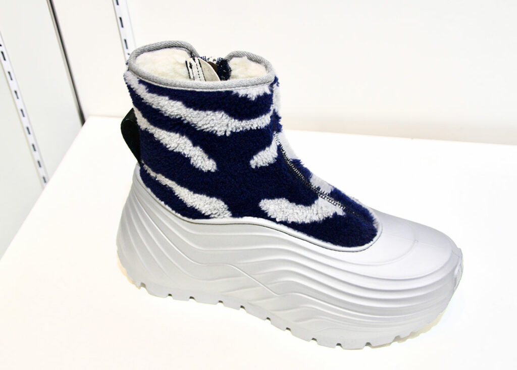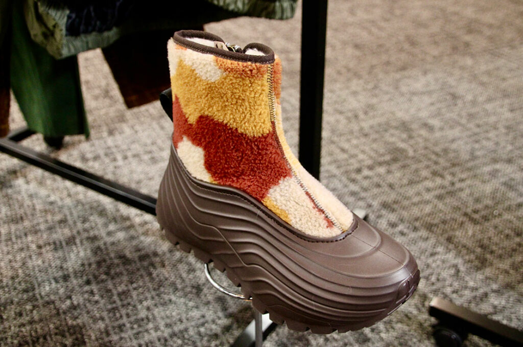 会場で紹介された、ムートンをあしらった暖かそうなウィンターブーツ! 保温性に優れるため、寒さが増す冬場に着用したい一足だ。