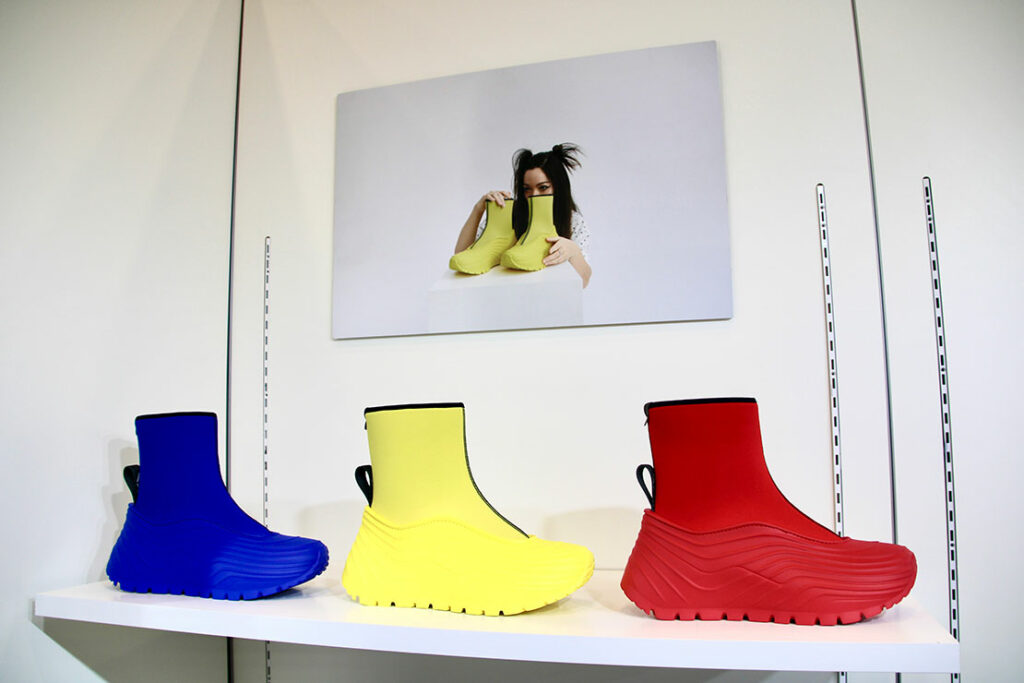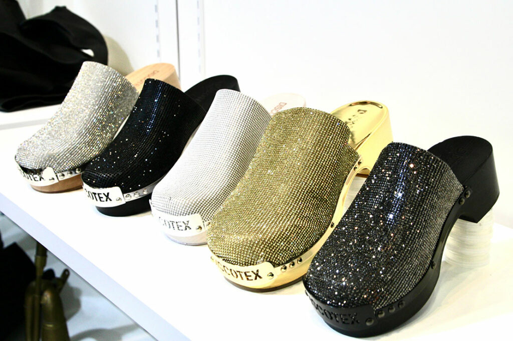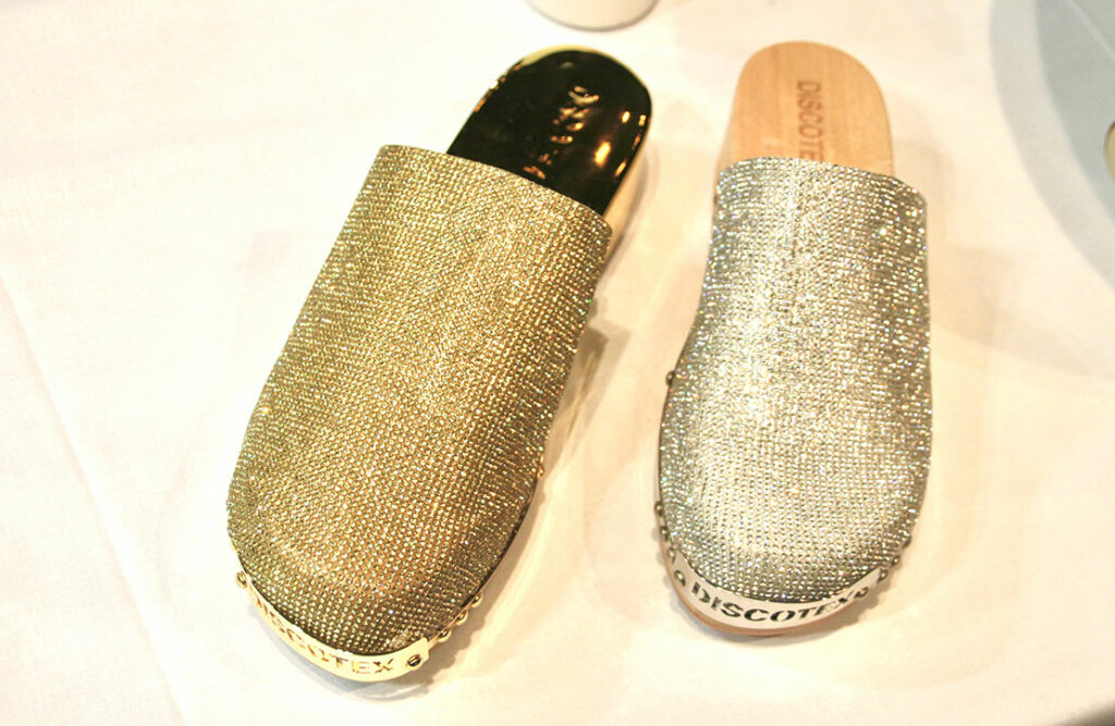 トスカーナ・フィレンツェに拠点を置くファッションブランド「DISCOTEX」。「UBE STUDIO」が、制作を手がけた。シルバー、ブラック、グリーンなど眩く輝く美しい木靴が揃う。