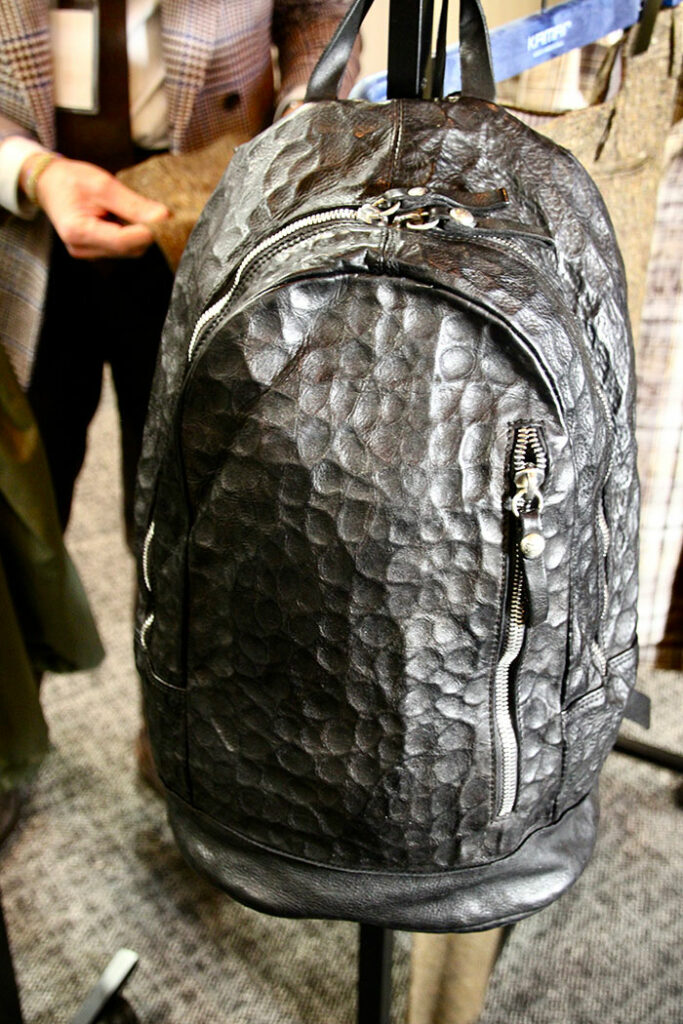 今回はイタリア全土から121社が出展。来場者数は1502人にものぼった。会場では、メンズウエアから、レザー製品、バッグ、紳士靴、ファッション雑貨など、2026年-2027年秋冬コレクションが幅広く紹介された。