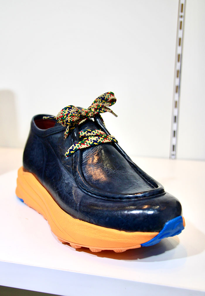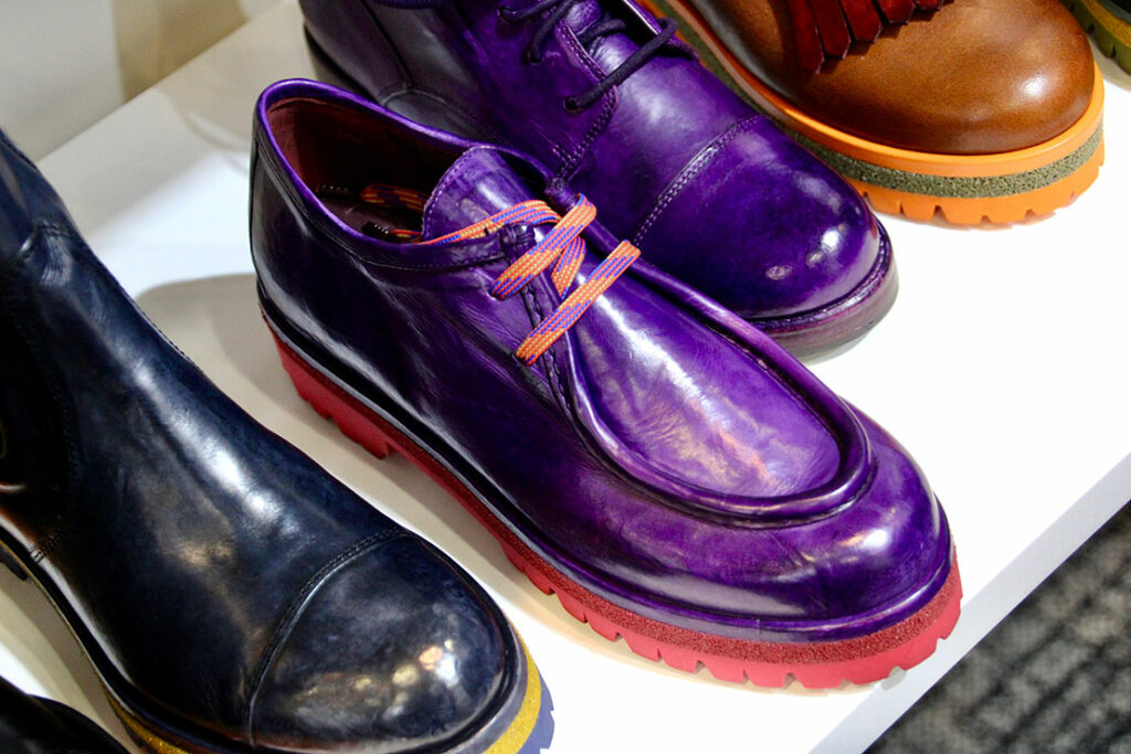 ベジタブルタンニンなめしのレザーを使用し、全て丁寧に手作りしたというメイド・イン・イタリーの個性的なシューズが揃う。