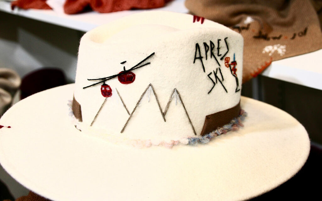 今季のイチオシは、冬場のリゾートをテーマにしたウール素材の暖かそうな帽子。アルプス山脈や雪の結晶、スキーなど、ウインターバカンスを表現した愛らしい刺繍が施されている!
