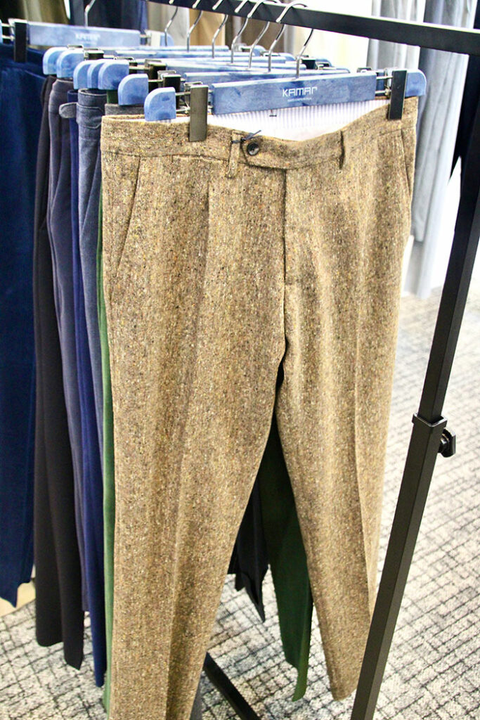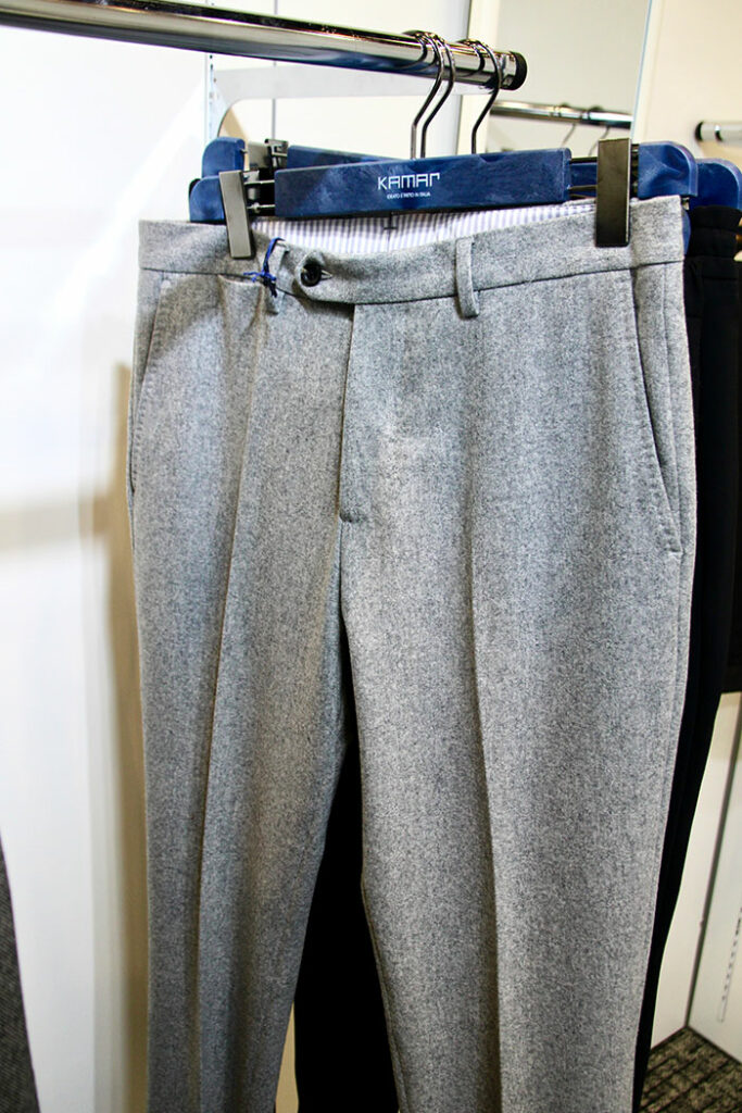 フォーマル仕立てのものから、身体に自然にフィットする細見シルエットのカジュアルスタイルまで、多様なフィッティングのパンツが揃うので、是非、お気に入りの一着を見つけてほしい。
