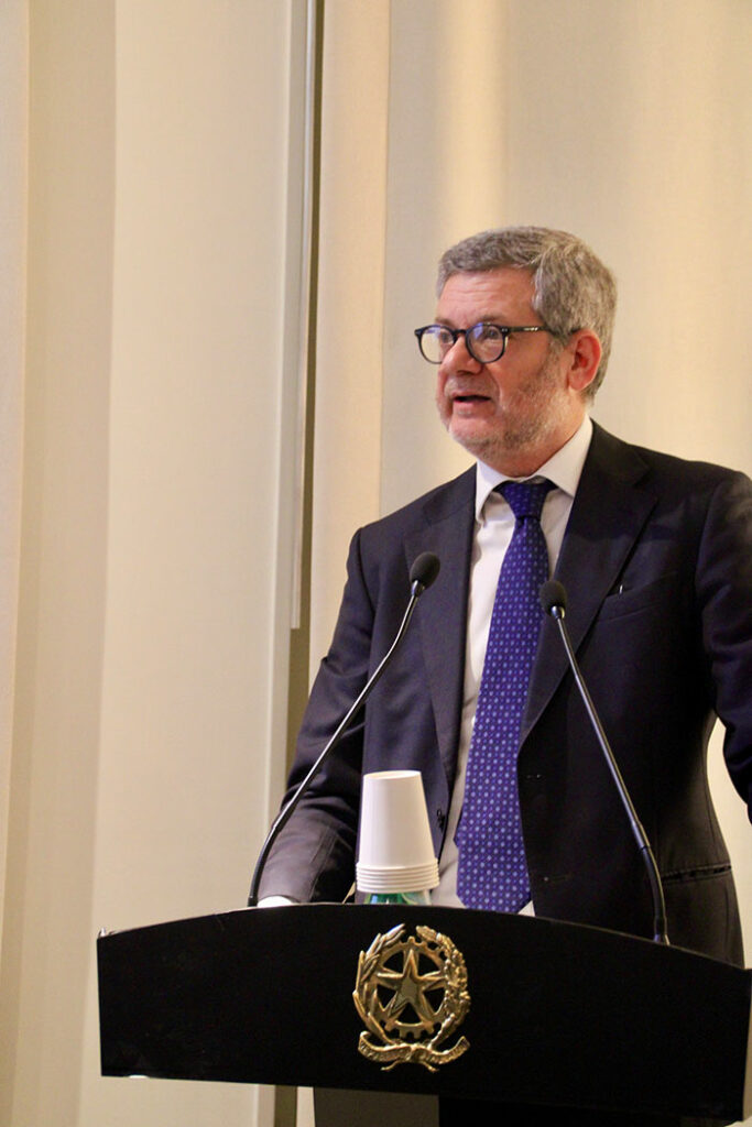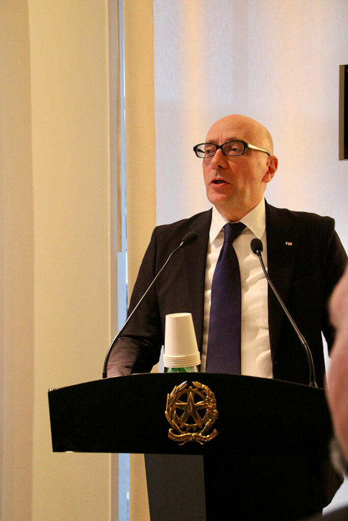 「日本はイタリアにとって重要な食品輸出市場です。輸出額では、欧州連合、英国、北米に次ぐ世界第4位にランクインしています。来年行われるグリーンEXPOでは、生物多様性を重視した、イタリアの農産物をアピールすることで、出会いと対話の機会を創出し、日伊の協力関係を強化していく予定です」とスピーチを述べる、マリオ・アンドレア・ヴァッターニ(Mario Andrea Vattani) 駐日イタリア大使。