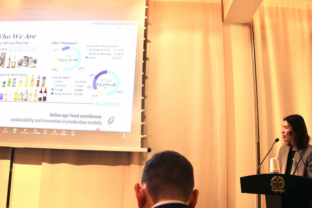 その他、日本を代表する飲料や食のプロフェッショナルである「サントリー」や「住商フーズ」も参加して、ワインや柑橘飲料など、高品質なイタリア食材やその食材を活用した多様な加工食品、飲料品などの魅力について言及した。