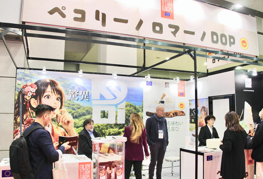 さらに、FOODEXの会場内には、欧州連合(EU)が共同出資する3年間のプロジェクト「KYOI 2024-27」の最終年度における重要な取り組みとして実施された「ペコリーノ・ロマーノDOP」のブースも!