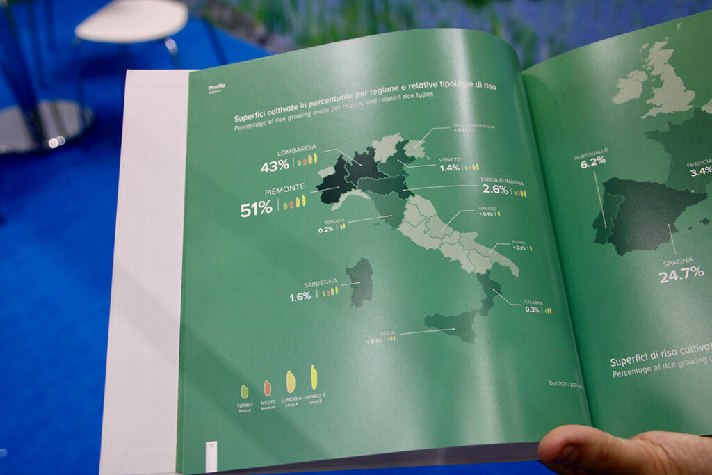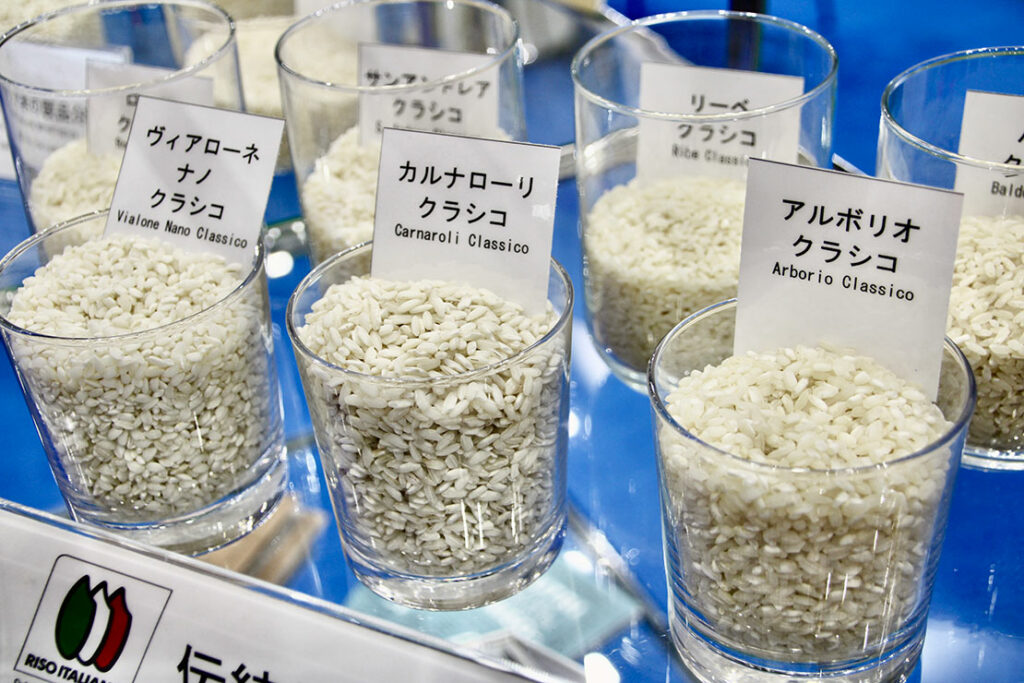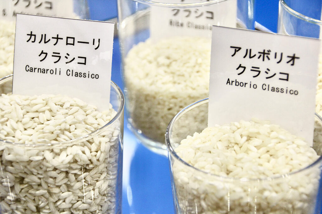 実はイタリアには、多岐にわたる米の品種があり、栽培される地域によって品種が異なるという。会場では、15種類に及ぶイタリア品種が紹介された。