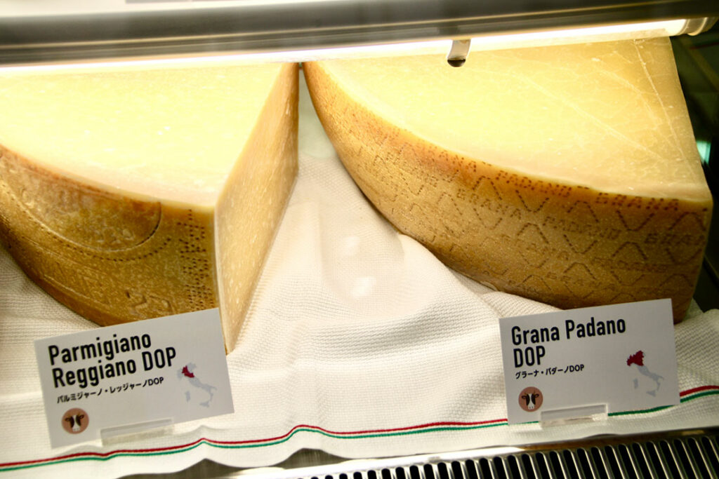 チーズコーナーでは、「イタリアチーズの王様」とも称される、「パルミジャーノ・レジャーノ(parmigiano reggiano)」をはじめ、イタリアを代表する30種以上もの多様なチーズが展示された。
