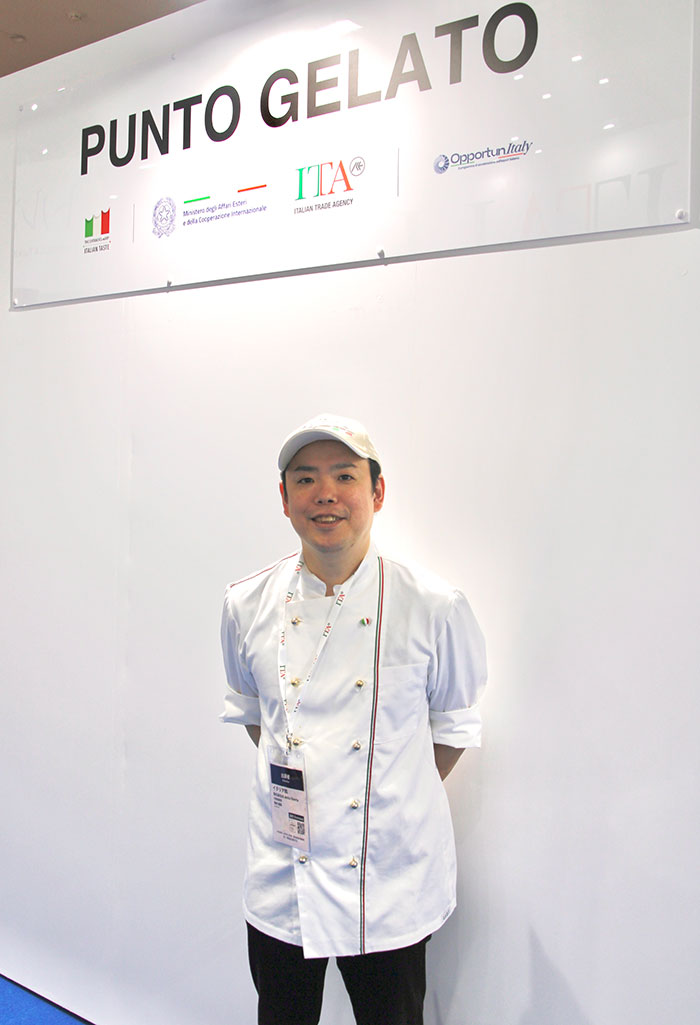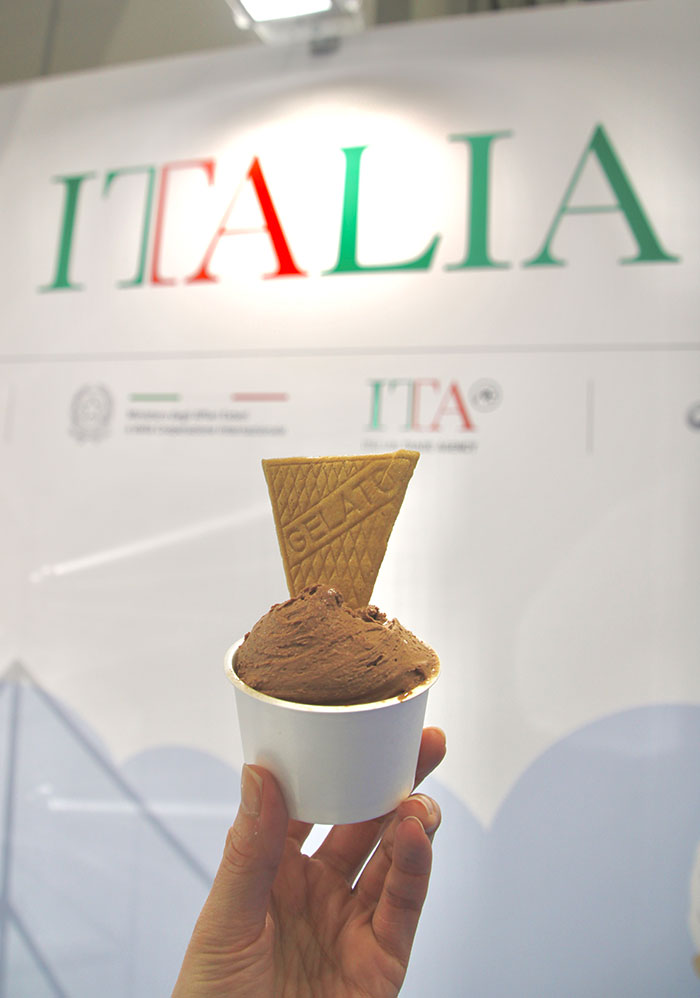 イタリアン・ジェラートコーナーでは、出展イタリア企業のウェハースやコーンにあわせて、素材から組み合わせまで、こだわりの美味しいジェラートが披露された!