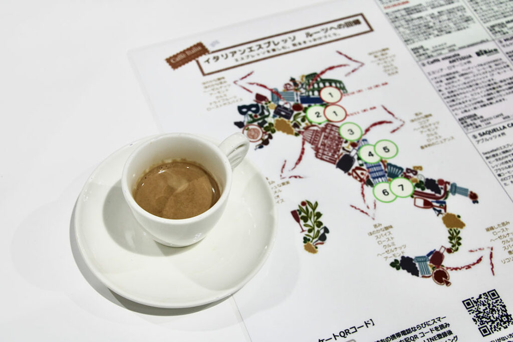 イタリア発祥の深い焙煎豆を極細挽きにし、濃厚に抽出したコーヒー「エスプレッソ」の文化にも注目! カフェコーナーでは、プロのバリスタが淹れる、9種類もの至極のエスプレッソの飲み比べを、楽しむことができた!
