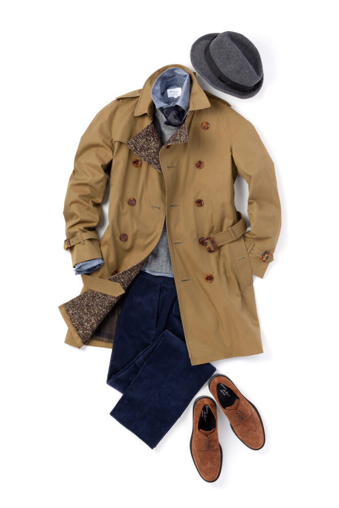 現在、インポートのトレンチコートに使用されるコットンギャバジンは英国国内で生産されている。バーバリーのトレンチコートは100人以上の職人によって300もの工程をかけて作り上げられている、まさに職人技の逸品。こうした厳格なモノ作りは英国伝統のスタイルで、トレンチコートにおいても最低26回の検査を経て商品化されているほど。伝統的なスタイルを守りながらも、ファッション性の高い、新しい試みを怠らずに行っているのはさすが英国ブランド。トレンチコートのエレガントなスタイルは銀幕のスターたちによってその着こなしと佇まいの美しさが伝えられてきた。男が選ぶコートとして、これ以上のダンディズムは存在し得ないであろう。バーバリーはその頂点に立つブランドだ。