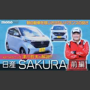 <blockquote class="wp-embedded-content" data-secret="gMZKIcRP4p"><a href="https://www.monomagazine.com/50562">【モノ・マガジンTV】<br>ツーCAR・TALK!<br>第1回:話題の電気自動車、日産SAKURAを試乗する 前編</a></blockquote><iframe sandbox="allow-scripts" security="restricted" src="https://www.monomagazine.com/50562/embed#?secret=gMZKIcRP4p" width="600" height="400" title="“【モノ・マガジンTV】<br>ツーCAR・TALK!<br>第1回:話題の電気自動車、日産SAKURAを試乗する 前編” — モノ・マガジンweb" data-secret="gMZKIcRP4p" frameborder="0" marginwidth="0" marginheight="0" scrolling="no" class="wp-embedded-content"></iframe><script type="text/javascript"> /* <![CDATA[ */ /*! This file is auto-generated */ !function(d,l){"use strict";l.querySelector&&d.addEventListener&&"undefined"!=typeof URL&&(d.wp=d.wp||{},d.wp.receiveEmbedMessage||(d.wp.receiveEmbedMessage=function(e){var t=e.data;if((t||t.secret||t.message||t.value)&&!/[^a-zA-Z0-9]/.test(t.secret)){for(var s,r,n,a=l.querySelectorAll('iframe[data-secret="'+t.secret+'"]'),o=l.querySelectorAll('blockquote[data-secret="'+t.secret+'"]'),c=new RegExp("^https?:$","i"),i=0;i<o.length;i++)o[i].style.display="none";for(i=0;i<a.length;i++)s=a[i],e.source===s.contentWindow&&(s.removeAttribute("style"),"height"===t.message?(1e3<(r=parseInt(t.value,10))?r=1e3:~~r<200&&(r=200),s.height=r):"link"===t.message&&(r=new URL(s.getAttribute("src")),n=new URL(t.value),c.test(n.protocol))&&n.host===r.host&&l.activeElement===s&&(d.top.location.href=t.value))}},d.addEventListener("message",d.wp.receiveEmbedMessage,!1),l.addEventListener("DOMContentLoaded",function(){for(var e,t,s=l.querySelectorAll("iframe.wp-embedded-content"),r=0;r<s.length;r++)(t=(e=s[r]).getAttribute("data-secret"))||(t=Math.random().toString(36).substring(2,12),e.src+="#?secret="+t,e.setAttribute("data-secret",t)),e.contentWindow.postMessage({message:"ready",secret:t},"*")},!1)))}(window,document); //# sourceURL=https://www.monomagazine.com/wp-includes/js/wp-embed.min.js /* ]]> */ </script>