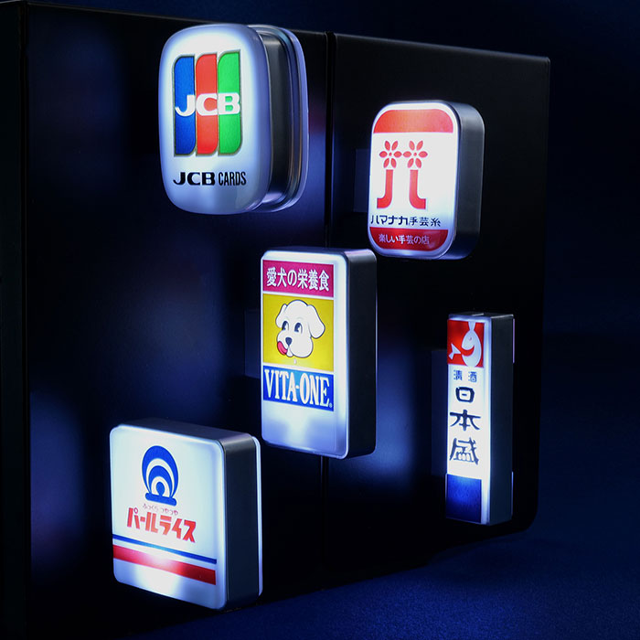 本体は外壁に取り付ける「突き出し看板」の形が再現され、看板の根元部分に内蔵した磁石で金属に貼り付けられる。