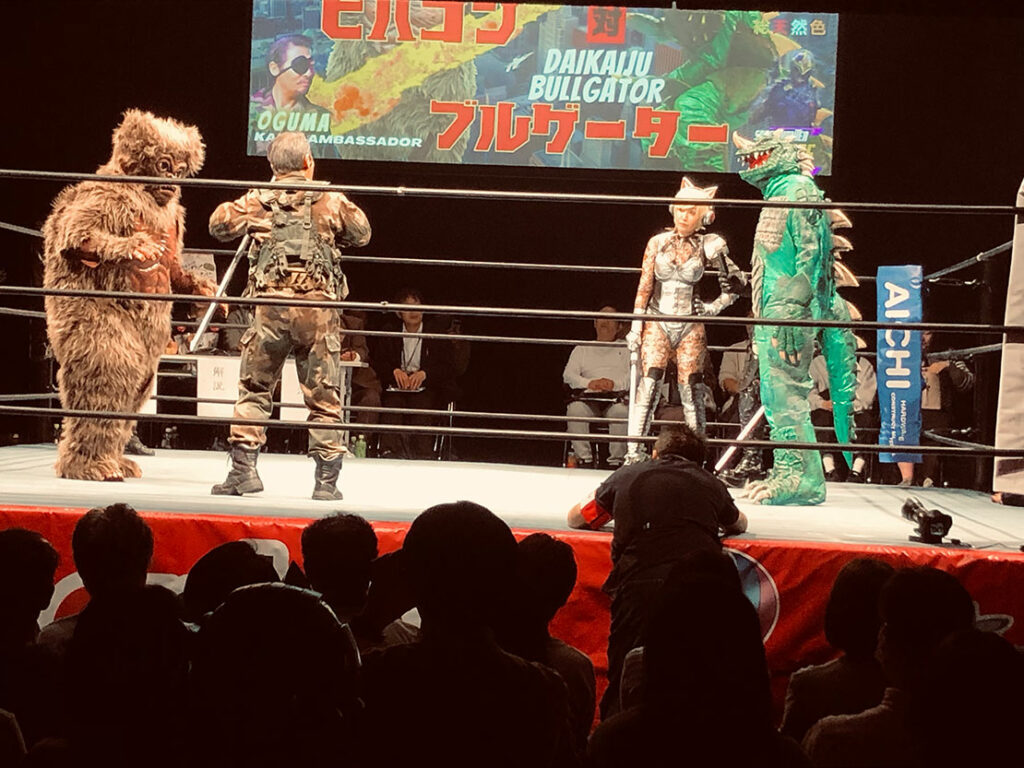 ヒバゴンを伴ってリングインした怪獣大使オグマ。怪獣たちと話すことが出来るという設定。演者の高野浩幸さんの迫真あるパフォーマンスで、怪獣愛が炸裂したキャラクターとなっている。