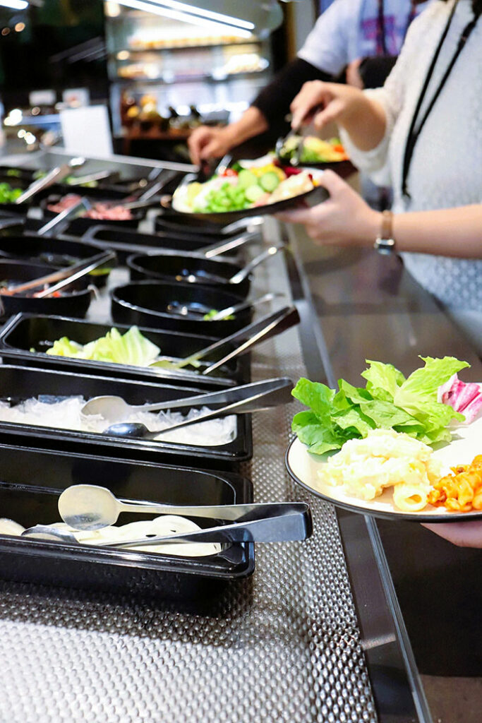 美味しく食べている合間も、温度チェックによる品質管理!シズラーでは、サラダバーの提供アイテムの温度チェックを欠かさず実施!温度計を用いて専用のアプリに測定温度を記録。もし温度が基準を外れていた場合は、即時に交換し、常に安全で美味しい状態での提供を徹底している。だからフレッシュなプレミアムサラダが食べられるのだ!