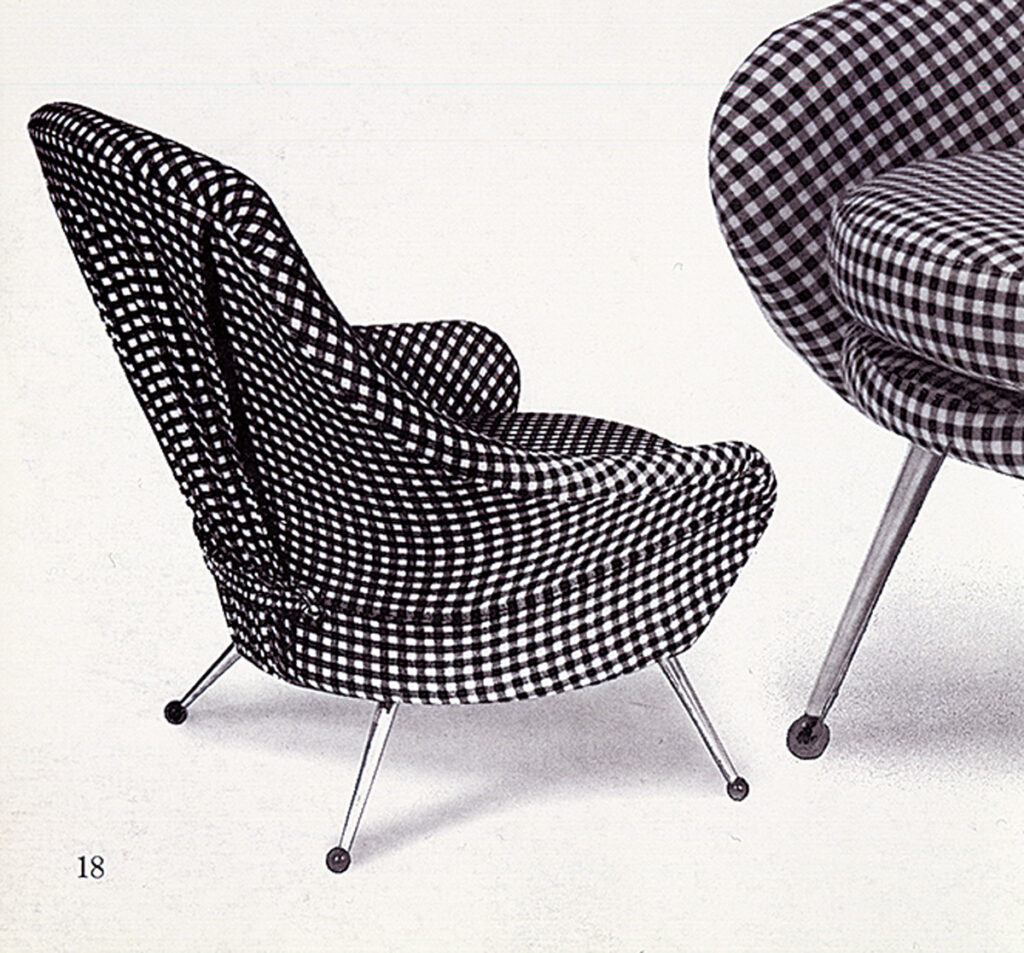 マルコ・ザヌーゾとアルフレックス社の『レディ』は1951年にデザインされた。職人による家具作りが連綿と続いていたイタリアの家具史において、工業生産を容易にする人工素材を大胆に採用した新しい家具の価値観は衝撃的であったはず。