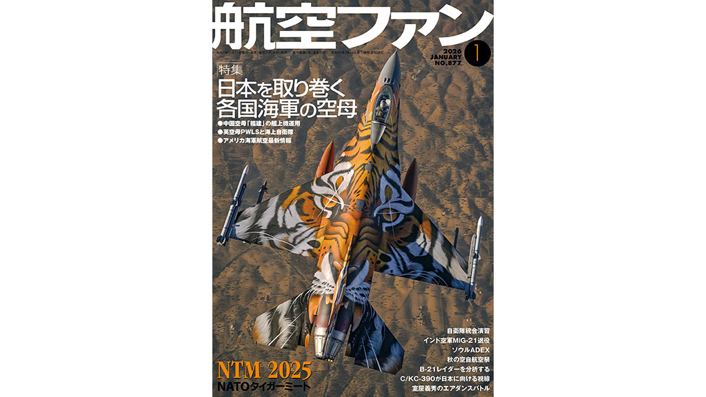 『航空ファン』26年1月号、日本周辺の空母事情を特集。巻頭はタイガーミート